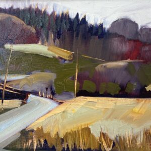 36cm x 33cm oil painting in a pale grey wood frame with a white wood inner molding. Actual image size: 20cm x 17cm