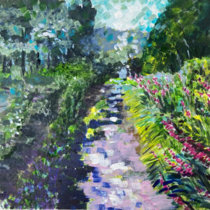 42cm x 32cm oil painting in a painted grey wood frame with a small painted white wood mount. Actual image size: 25cm x 15cm